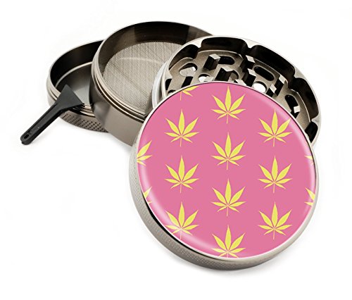 Pink Weed Pattern 4 Piece Zinc Titanium Metal Herb Grinder 2.5" Diamond Grind Cute Girly