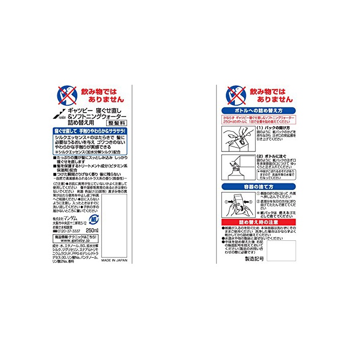 원본상품명: GATSBY (ギャツビ?) ?ぐせ直し&ソフトニングウォ?タ? 詰め替え用 250mL