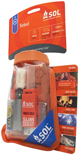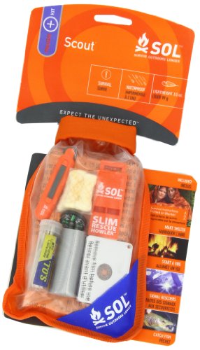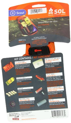 ReleaseDate : 2011-02-08 Studio : Adventure Medical Kits Publisher : Adventure Medical Kits Binding : Sports Product Description Give yourself a fighting chance for survival with the Survive Outdoors Longer Scout Survival Kit when wilderness travel takes an unexpected turn. Escape the elements, stay warm, and signal rescuers so you're easy to find in unexpected situations with this survival kit. Keep warm and sheltered from the elements with a heat-reflective 2-person survival blanket and start multiple fires with the one-hand-operable Fire Lite striker and waterproof tinder. After your immediate needs (medical care, shelter, warmth, and hydration) are met, find food with the combination fishing/sewing kit. Easily signal your position to rescuers with a 100-decibel Slim Rescue Howler rescue whistle and Rescue Flash signal mirror with retro-reflective aiming aid. Also including a compass and duct-tape, this survival kit stores in a professional-grade RF-welded waterproof bag to keep contents dry in any conditions. 0