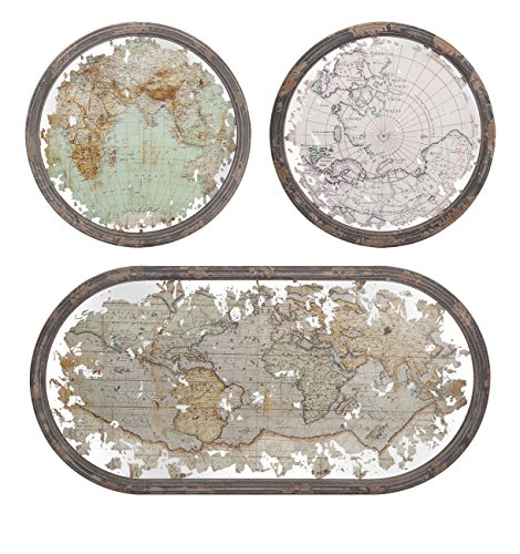IMAX 65249-3 Mirrored Map Wall Decor, Set of 3