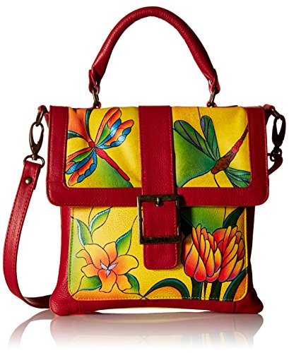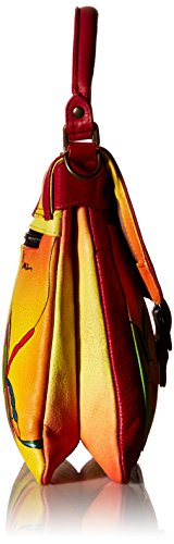 Anuschka Handpainted Leather 8074-DGP-Y Flap Saddle Bag