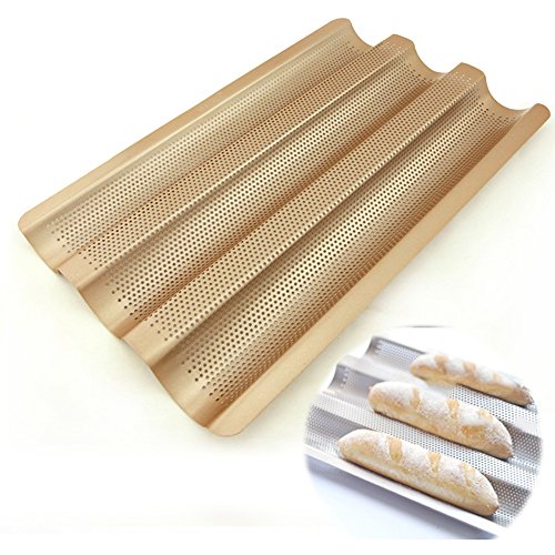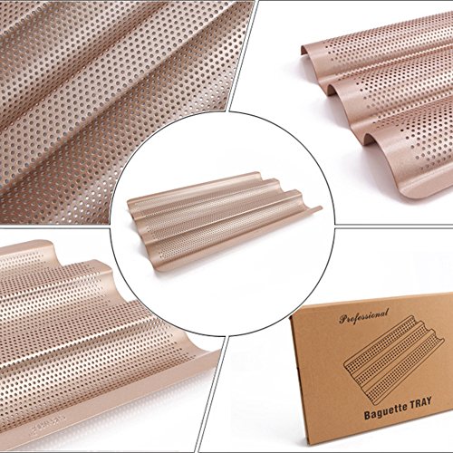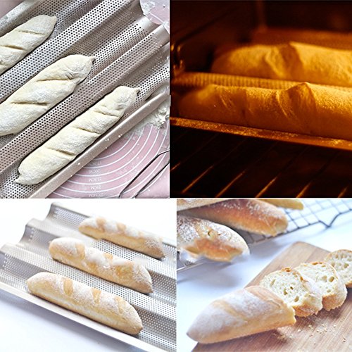(Amhii)/Kitchen Dining/Cookware Baking/DIRECT FROM USA/Amhii 3 Perforated Baguette Pan - Non Stick Carbon Steel French Bread Pan Wave Loaf Bake Mold, ...
