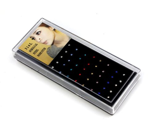 -. Title : Best Surgical Steel Nose Stud Lot - 40 Piece Set (Colorful)