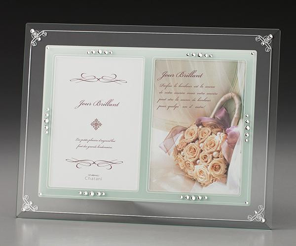 美しいガラスに施したエレガントな飾りとラインストーンが光り輝くシンプルで品の良いフォトフレームです。透明感と上品な輝きが記念日や思い出の1枚をより一層引き立ててくれます。結婚祝いのギフトにもオススメのアイテムです。 |