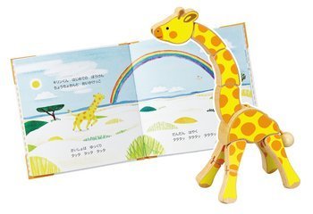 Watching a picture book depicting the adventure of Kirin-kun, can you express the same pose with a toy giraffe? Let's make various poses!