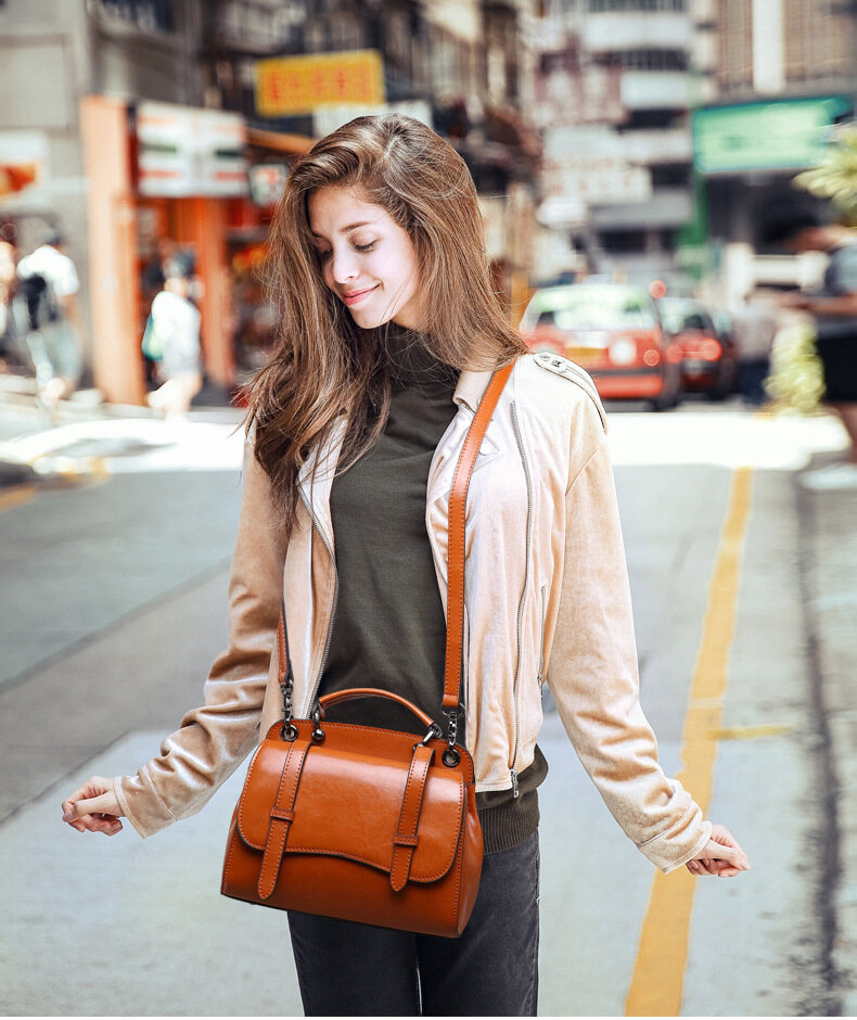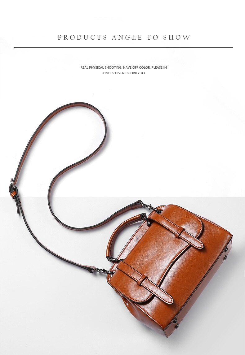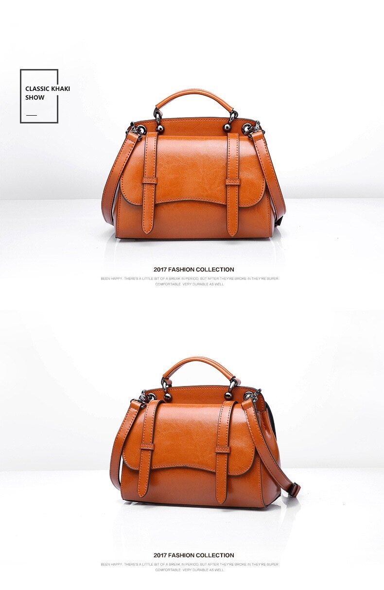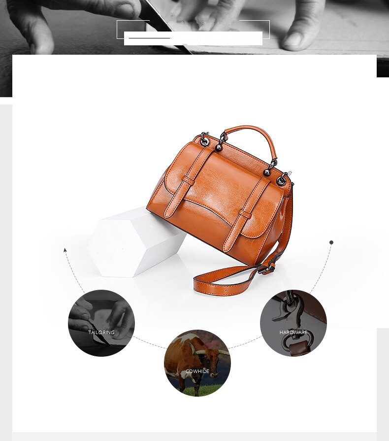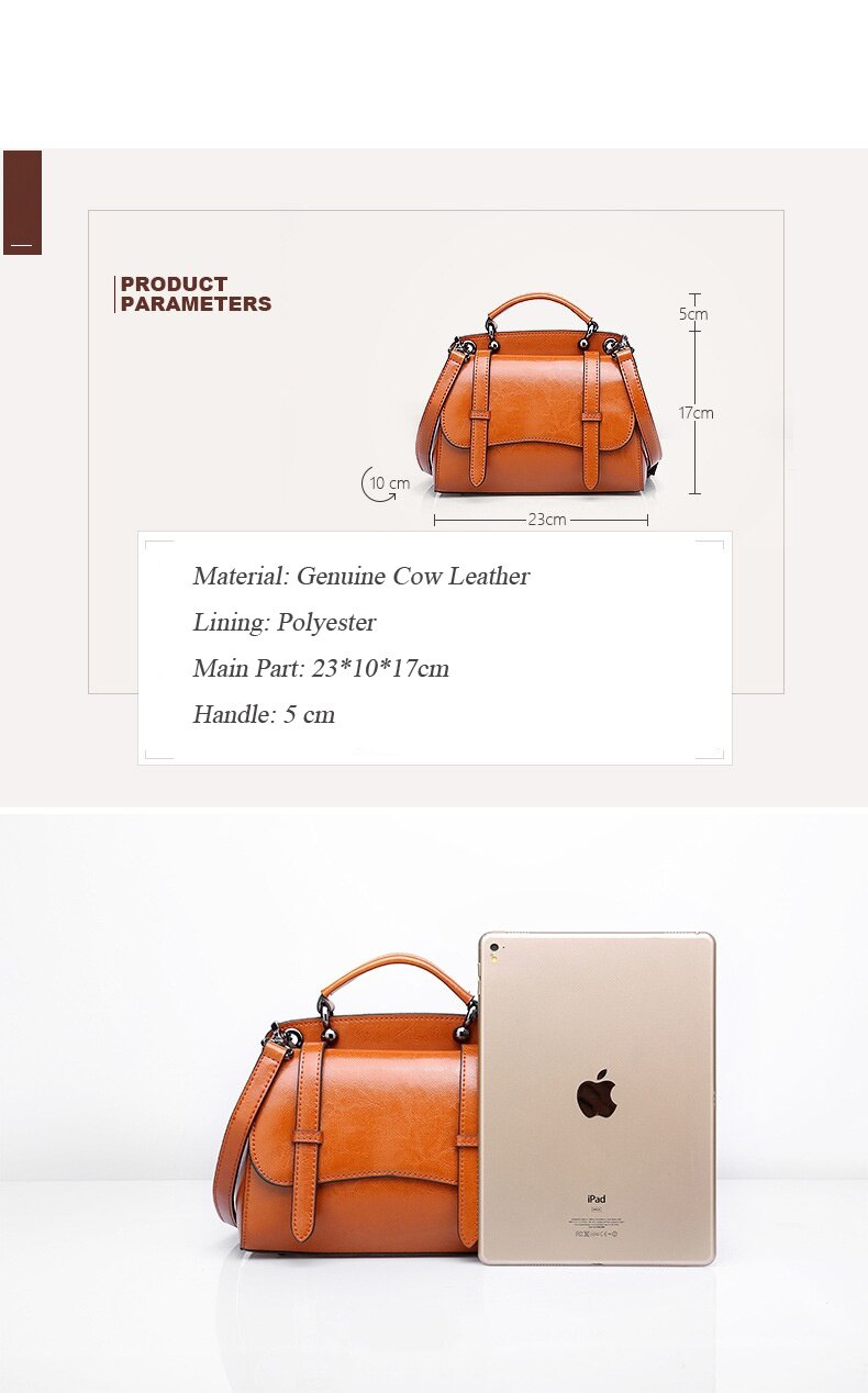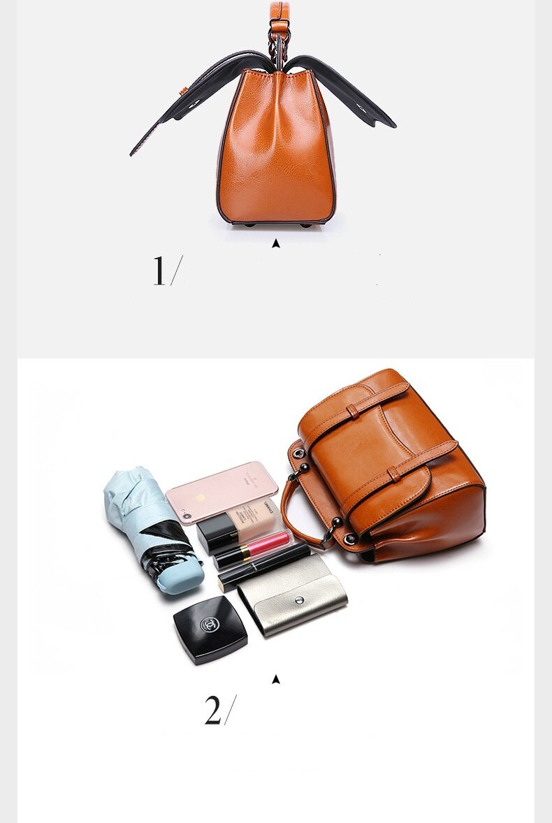 This multifunctional handbag is made by high quality cow leather, with polyester as lining.