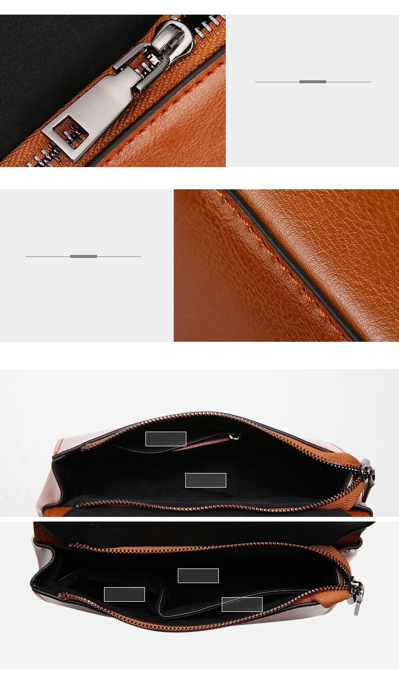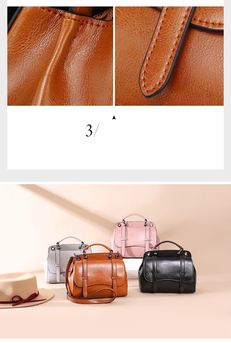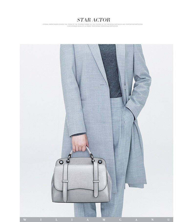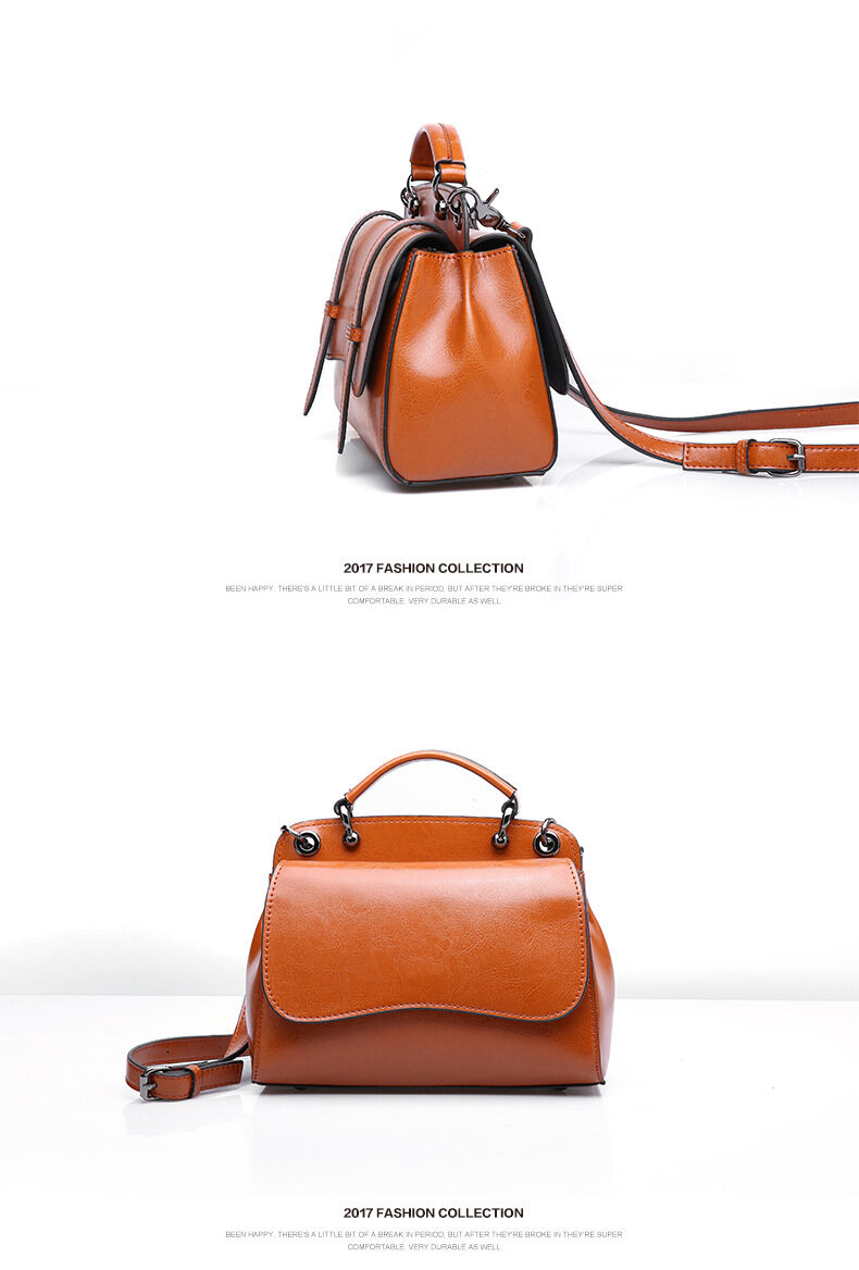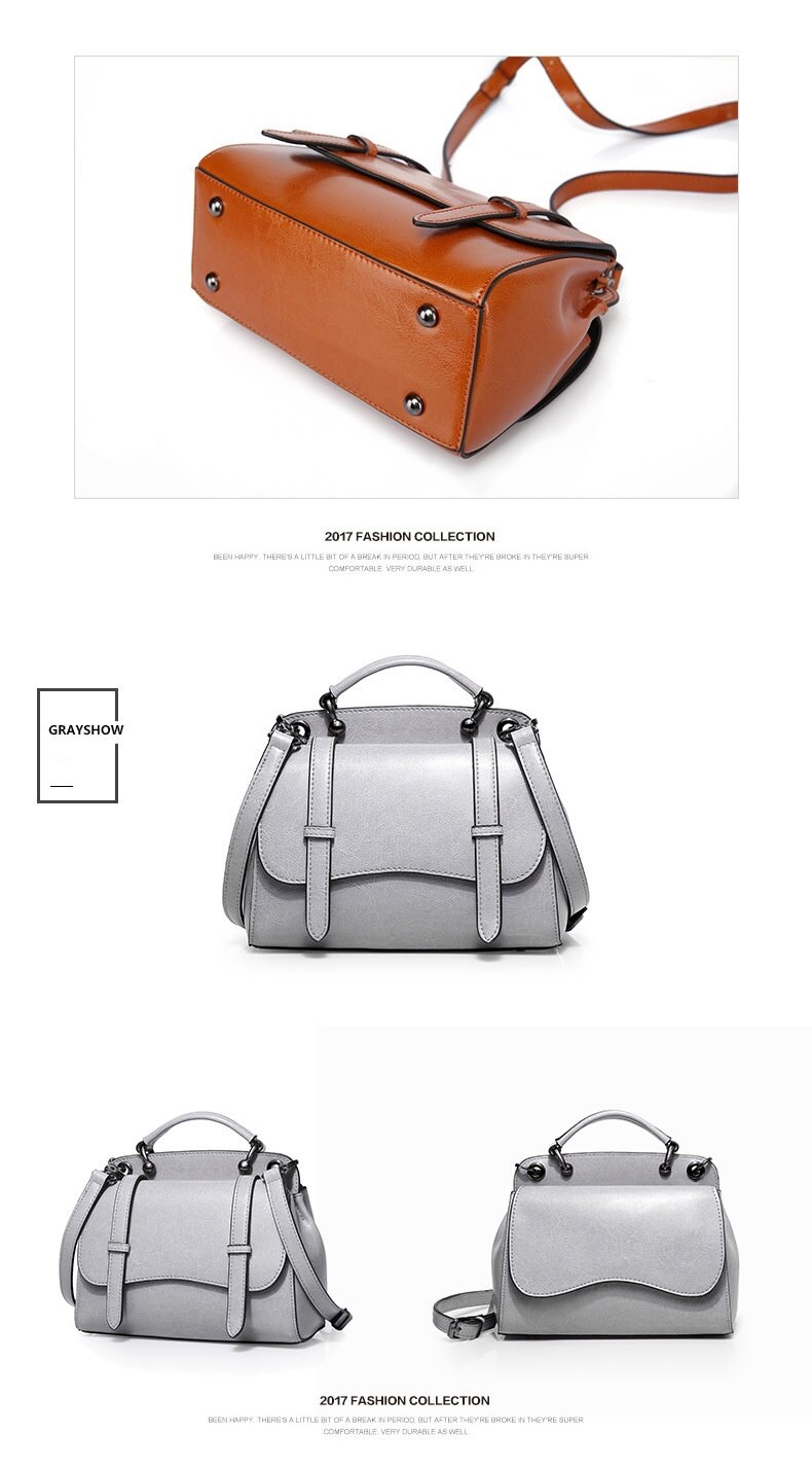 This multifunctional handbag is made by high quality cow leather, with polyester as lining.