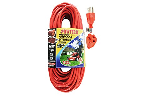 POWTECH Heavy duty Outdoor/ Indoor 3 Wire Grounded SJTW 16/3, 1625 WATTTS, 13 AMPS Extension Cord, ETL VERIFIED, Orange, 100 Feet