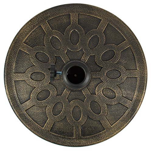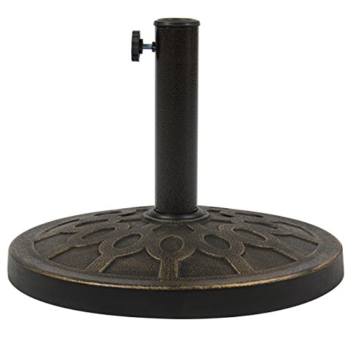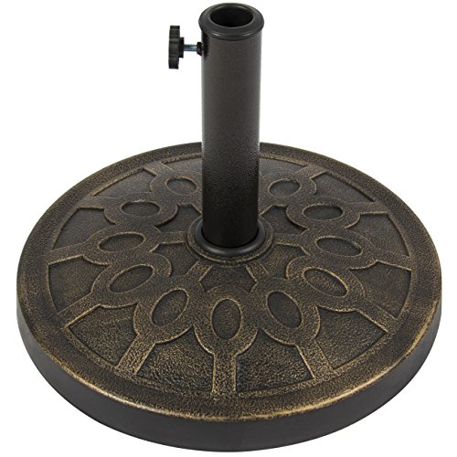 -. Binding : Lawn & Patio -. Brand : Best Choice Products -. Color : bronze -. EAN : 0816586021212 -. Feature : Durable umbrella stand base is constructed of rust-resistant resin and steel / 18" round base is decorated with patterns and features a bronze, rustic finish / 1.5" (dia) opening holds patio umbrellas securely and upright with a tightening knob / Heavy duty built ensures stability and relaxation in your patio area / Dimensions: 18"(L) x 18"(W) x15 "(H) -. Label : Best Choice Products -. Manufacturer : Best Choice Products -. Model : SKY2805 -. MPN : SKY2805 -. PackageQuantity : 1 -. PartNumber : SKY2805 -. ProductGroup : Lawn & Patio -. ProductTypeName : OUTDOOR_LIVING -. Publisher : Best Choice Products -. Size : Medium -. Studio : Best Choice Products -. Title : Best Choice Products 18" Patio Umbrella Base Stand -. UPC : 816586021212