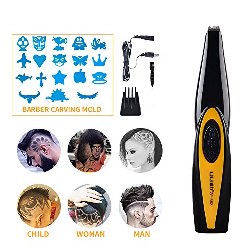 - Package Included:1 x Hair Trimmer,18 x Barber Carving Mold ,1 x Shaving Comb,1 x USB Charging Line,1 x Brush