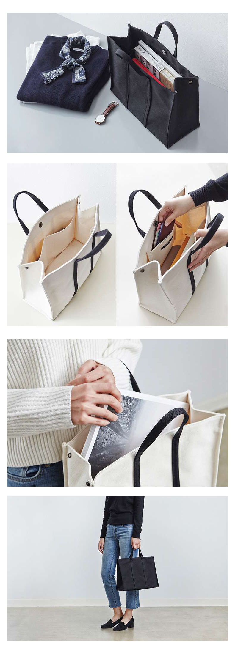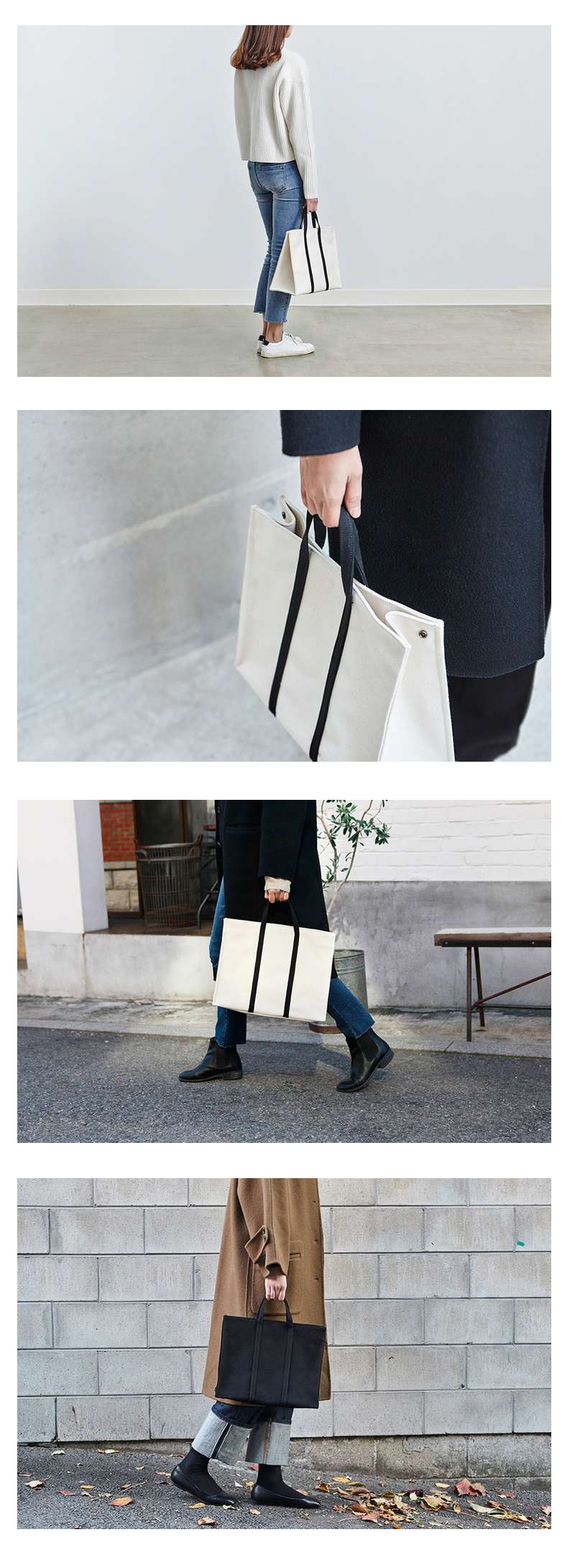 Unisex casual canvas square tote bag show pouch 2color Plain 20 women