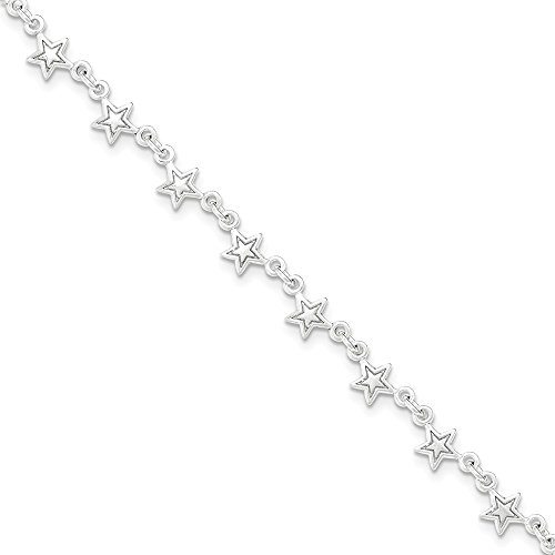 -. Feature : .925 Sterling Silver / Finish: Polished / Polished Star Anklet Bracelet With 1" Extender, 9 Inches / Clasp: Lobster / Length: 9 Inches / Width: 1.50 Millimeters / Approximate Weight: 6.05
