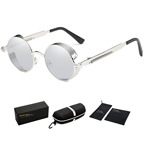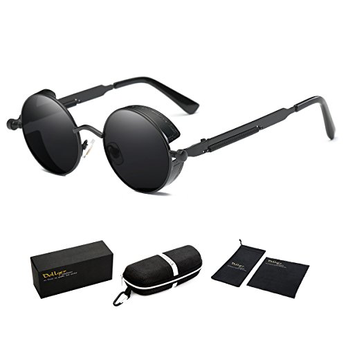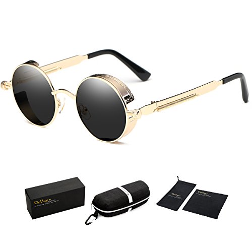 STYLE- High-definition steampunk round sunglasses with creative metal frame street fashion designer UV protection sunglasses.