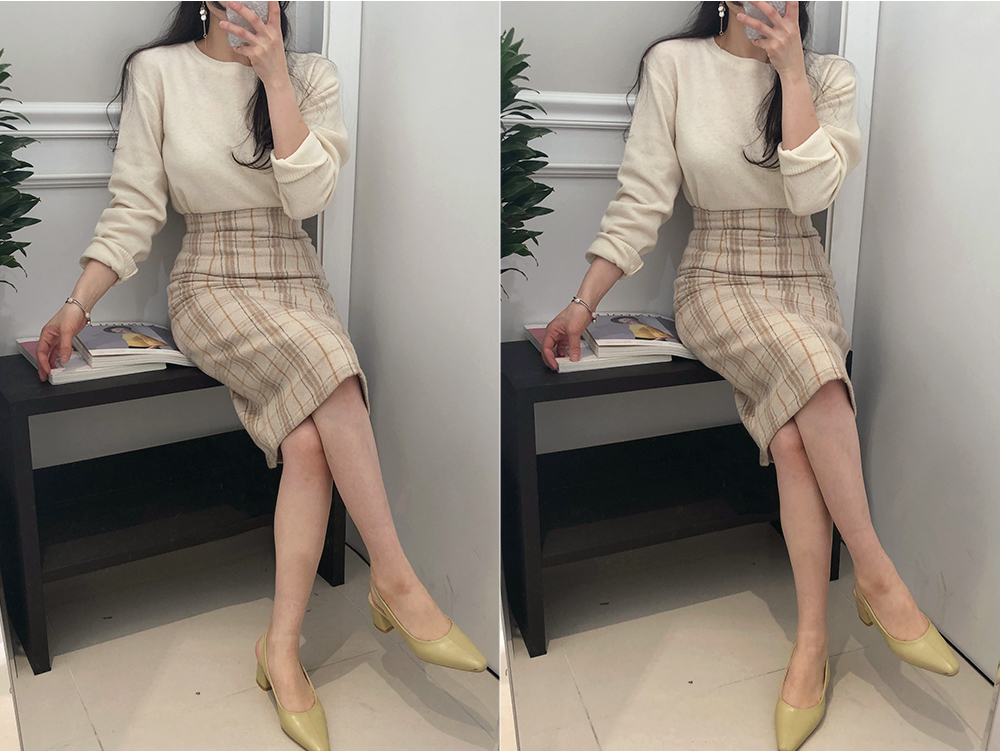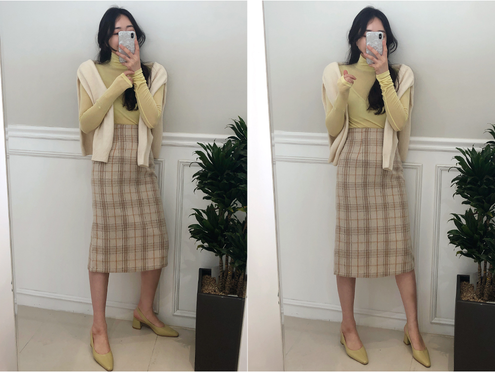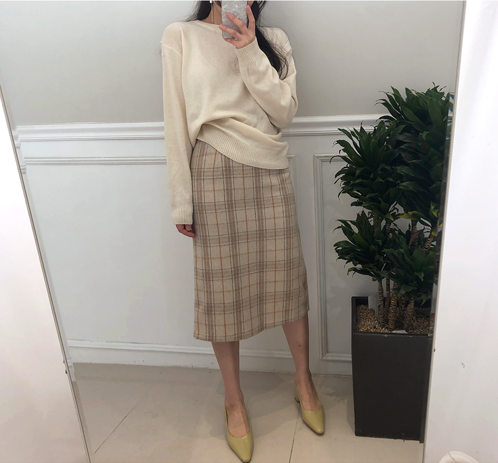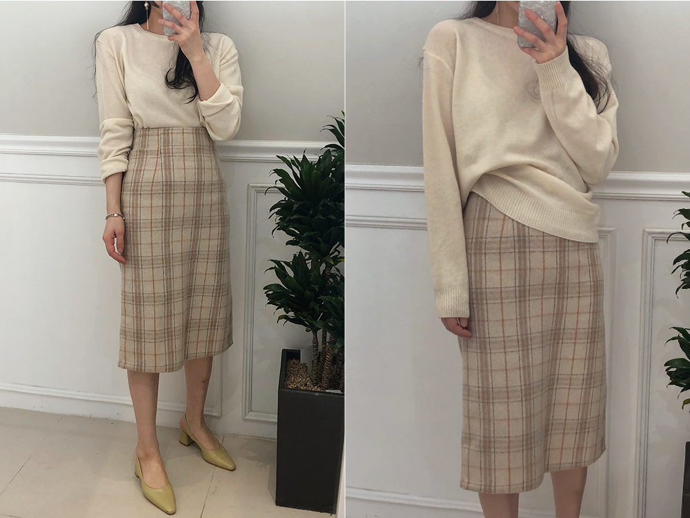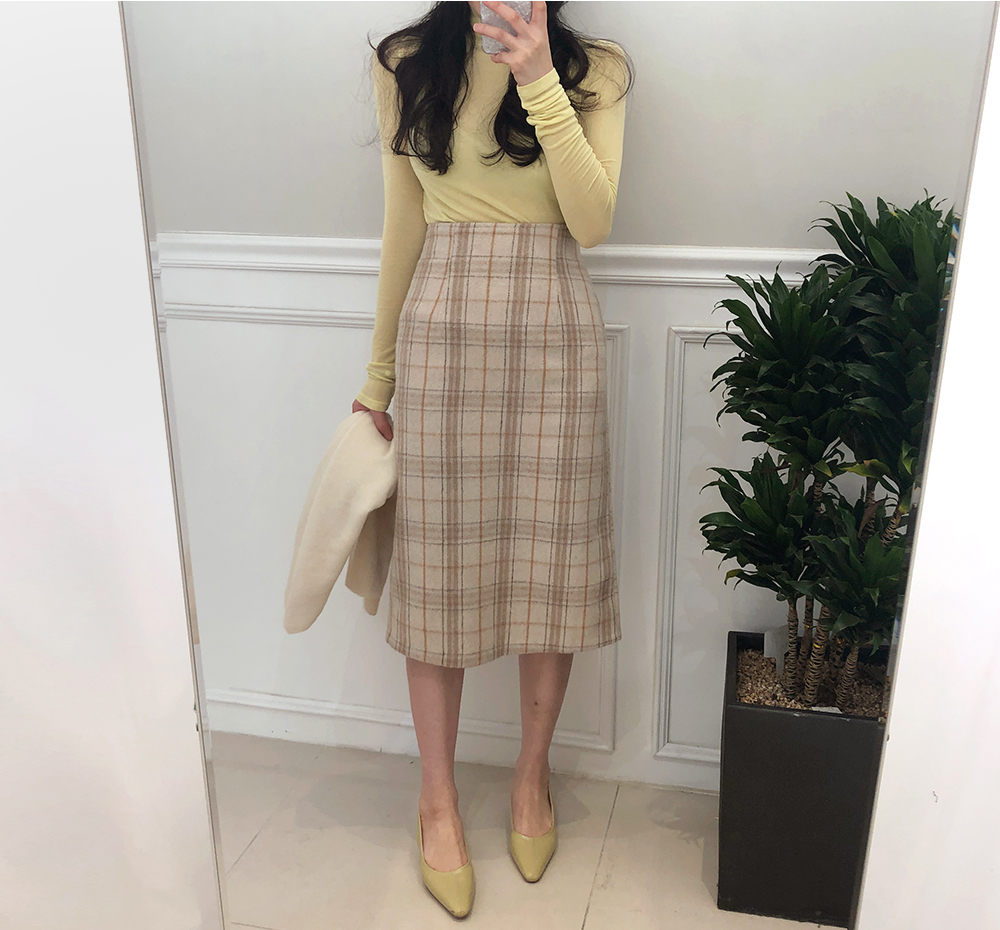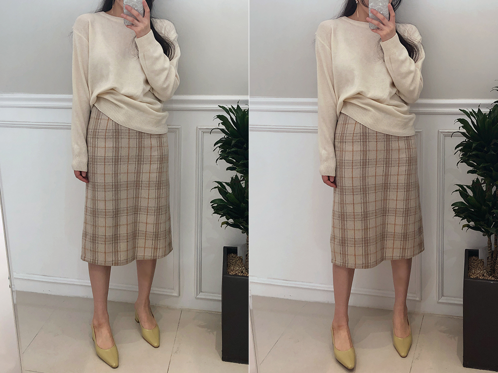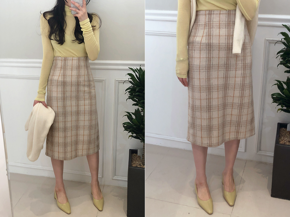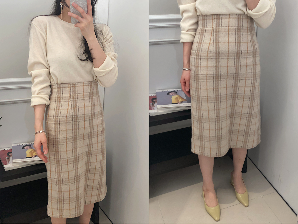 미디 울 체크 H라인 스커트
