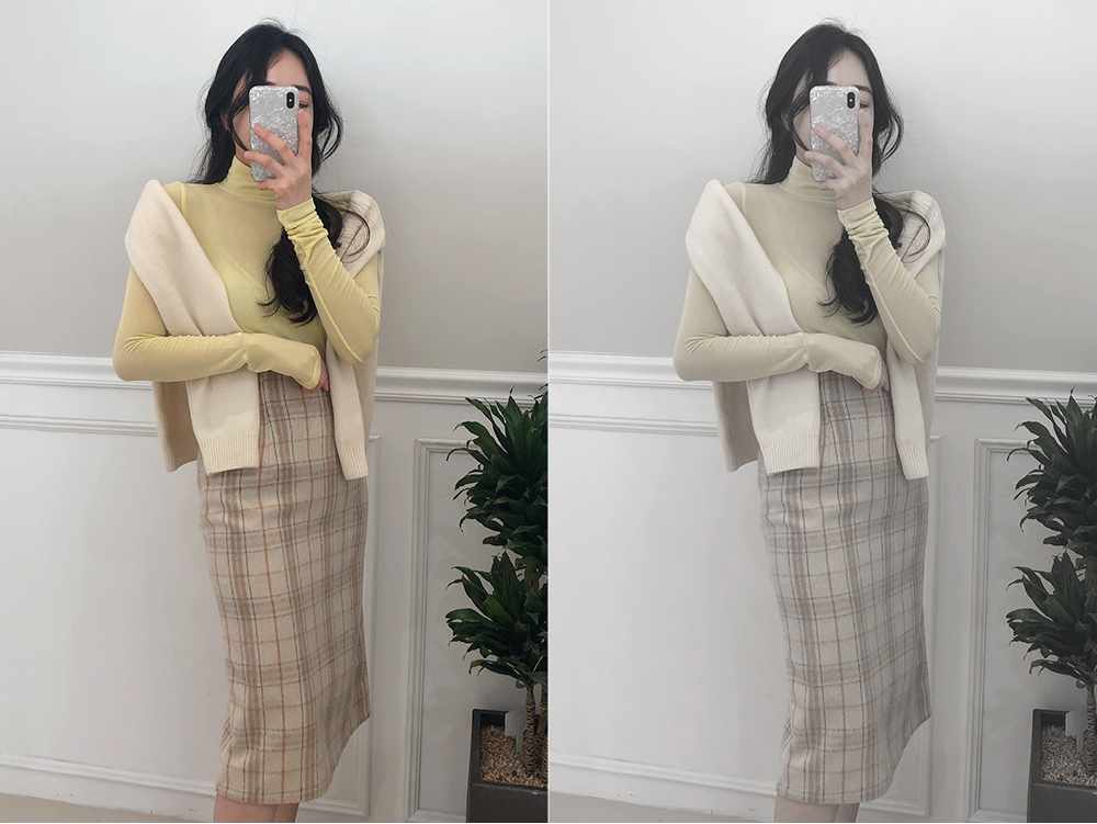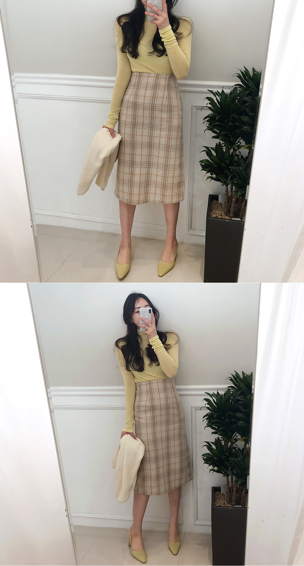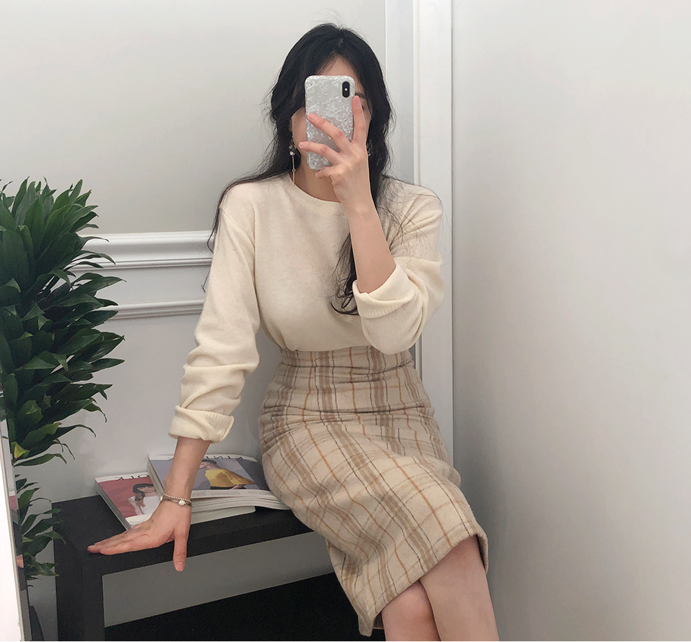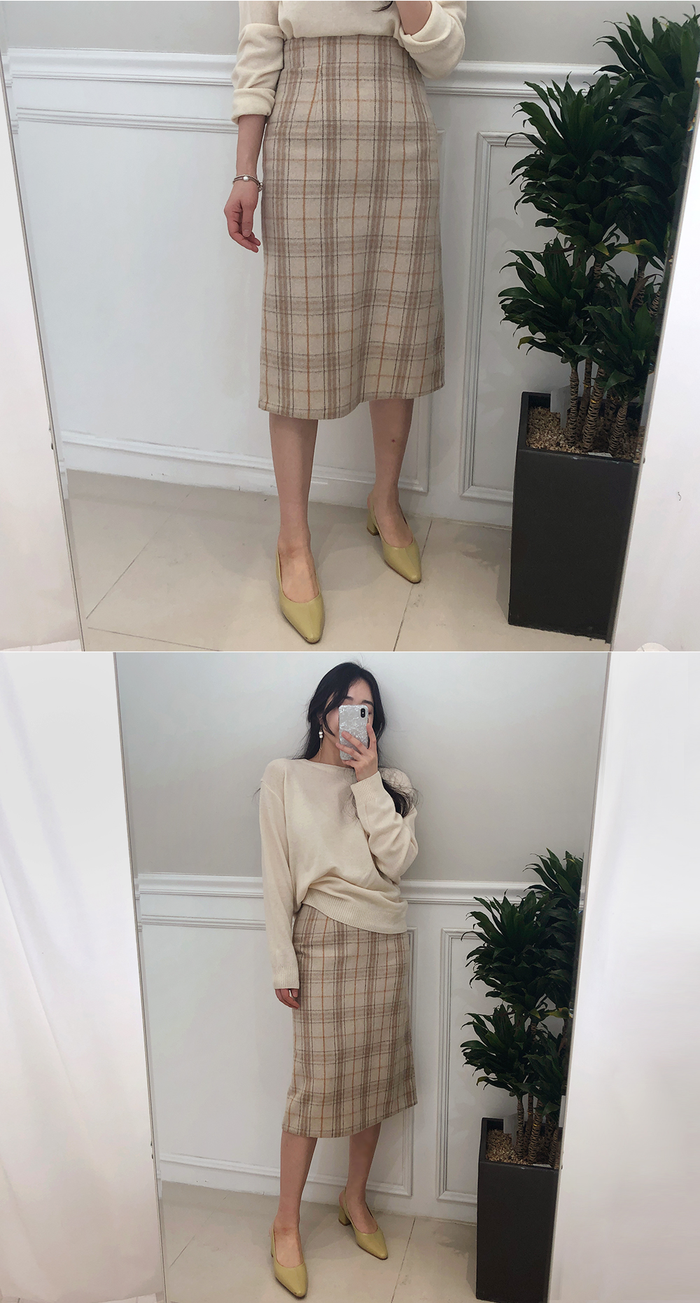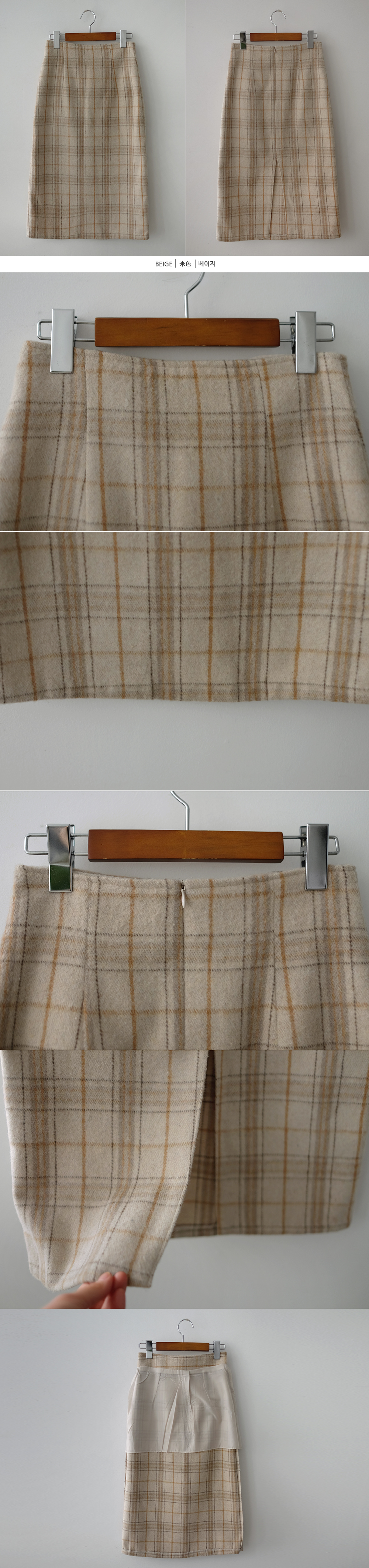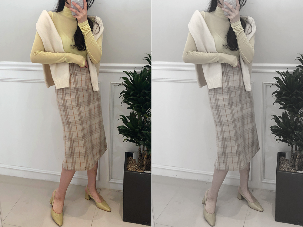 미디 울 체크 H라인 스커트