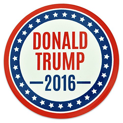 Studio : PinMart Publisher : PinMart Binding : Toy Product Description Our specially designed Donald Trump 2016 Button is 2-1/4 inches round, protected by a epoxy durable coating, Red, White or Blue digitally printed face side, with a shiny metal back featuring a safety pin fastener for perfect positioning of your button. This makes great hand-outs at Republican Party events, purchase for your group to wear at the Republican party convention and election for 2016! Perfect to attach to your purse strap, lapel or lanyard to show your patriotism, pride and political support of the republican party and the election race in November! 0