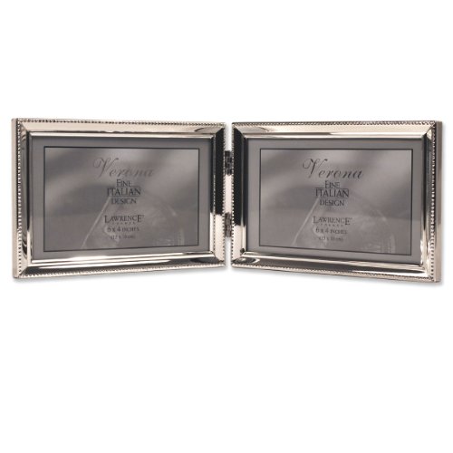 -. Binding : Kitchen -. Brand : Lawrence Frames -. Color : Silver -. Department : Home Décor -. EAN : 0885409553001 -. Feature : Traditional silver metal frame that will compliment any décor / Constructed of heavy weight metal and silver-plated; includes high quality black velvet backing / Silver plated perfect for engraving / Wipe clean with dry cloth / Holds two 4 inch by 6 inch photo; overall dimensions 4.1 inches by 6.2 by 1.1 inches -. Label : Lawrence Frames -. Manufacturer : Lawrence Frames -. Model : 11664D -. MPN : 11664D -. NumberOfItems : 1 -. PackageQuantity : 1 -. PartNumber : 11664D -. ProductGroup : Home -. ProductTypeName : HOME -. ProductTypeSubcategory : other-professional-frames -. Publisher : Lawrence Frames -. Size : 6 Inches X 4 Inches Double -. Studio : Lawrence Frames -. Title : Lawrence Frames Polished Silver Plate 4x6 Hinged Double Horizontal Picture Frame - Bead Border Design -. UPC : 885502879121 -. Warranty : parts