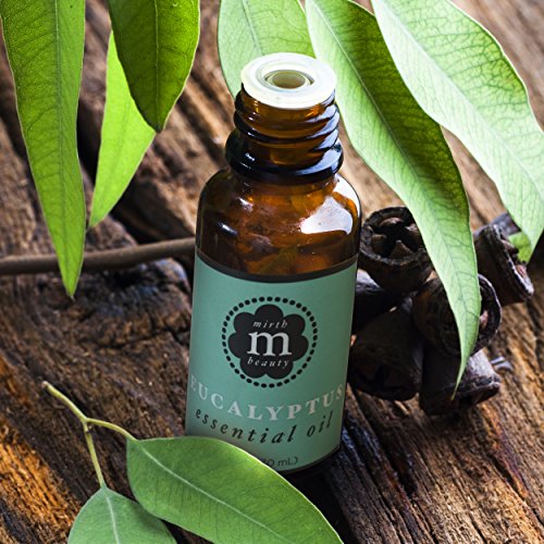 Mirth Beauty Eucalyptus Essential Oil for bath, feet, relaxing rub, home fragrance and reed diffuser bottle. Large 1oz (30ml) dropper bottle.
