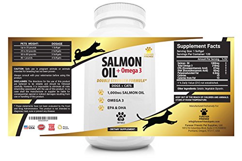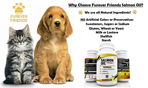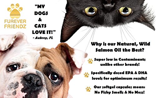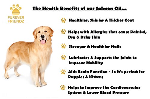 -. Feature : ★ 100% NATURAL, WILD SALMON OIL, DHA & EPA FATTY ACIDS ★ Our Salmon Oil soft gels are 100% natural. They are totally free from artificial colors, preservatives, sweeteners, sugar, starch, milk, lactose, gluten, wheat, yeast, shellfish and sodium. They come in a supersize bottle of 120 soft gels for extra value! Our soft gels mean that they wont leave a fishy smell on your pets breath. Plus, they are easy to give to your pet, and will leave no mess. / ★ SUPER SOFT, HEALTHY SHINY COAT & STRONG NAILS ★ Our soft gels help to aid hydration & nourishment of the coat for healthy, soft and glossy fur. They also help your pet with less itchy skin, sometimes caused by allergies. Another added benefit of our product is that it also helps strengthen your dog or cats nails. / ★ AIDS HEALHY JOINT FUNCTION & MOBILITY ★ Our supplements help to lubricate your pets joints. They help aid healthy, easy, pain-free function and mobility. They help to reduce painful movements in pets with health problems such as arthritis, hip and elbow dysplasia. They also help to boost your pets immune system, and aid healthy function of the cardiovascular system. They can also help to reduce allergy symp, and improve brain function and memory. / ★ MADE IN USA ★ We are very proud that all of our Furever Friendz supplements are Made in the USA. Our supplements are also made in a FDA registered & GMP certified facilities. So you can rest assure that your pets health is in great hands when choosing our supplements. / ★ MONEY BACK GAURENTEE ★ We also offer a 100% money back guarantee - No questions asked. If your pets tries our product for 60 days and you don't see any improvements, just simply let us know that you aren't happy, and we will give you your money back!