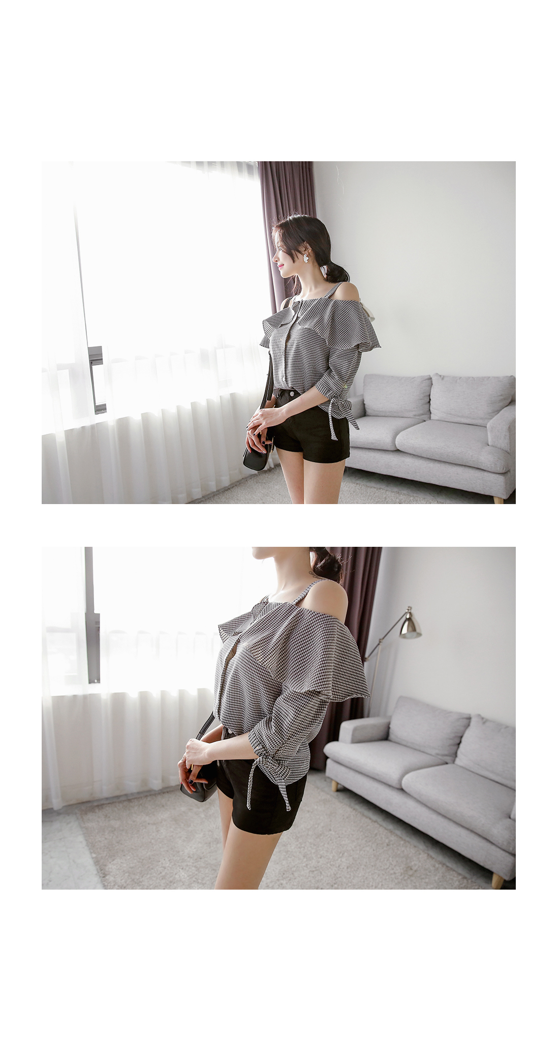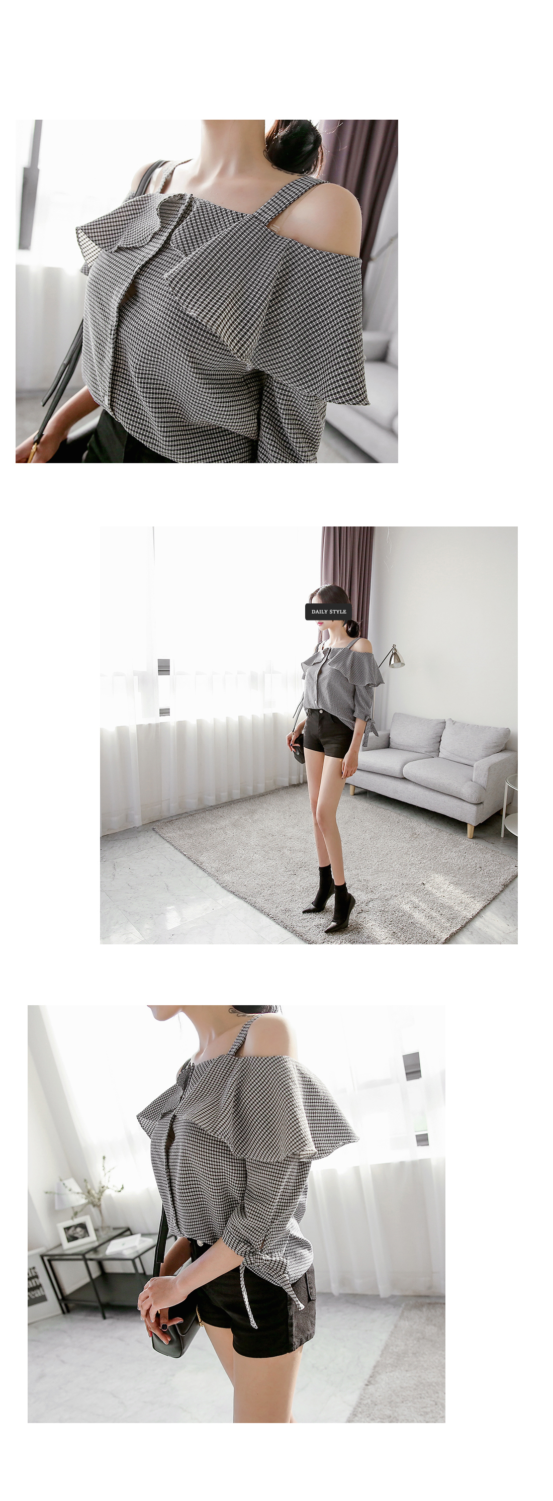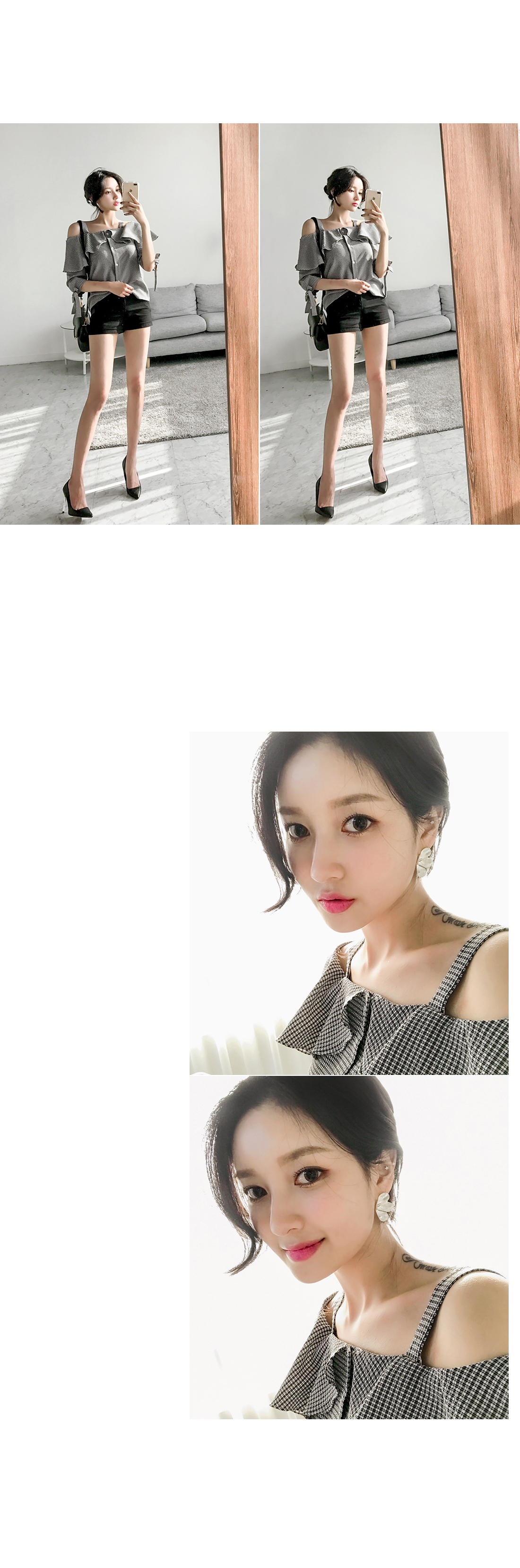 어깨라인과 쇄골라인이 돋보이는 블라우스 아이템을 소개해드려요~^^ 리본,프릴 디테일과 체크패턴으로 봄 시즌에 알맞은 러블리한 코디매치를 할 수 있답니다~ 적당한 두께감으로 봄부터 여름까지 다양한 아이템들과 스타일링 연출을 할 수 있는 활용도 높은 블라우스예요~ 팬츠,스커트 등 다양한 아이템들과 부담없이 스타일링 연출이 가능한 블라우스 아이템을 적극 추천해드려요~