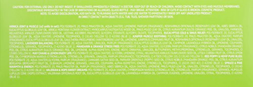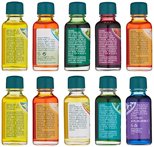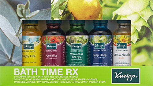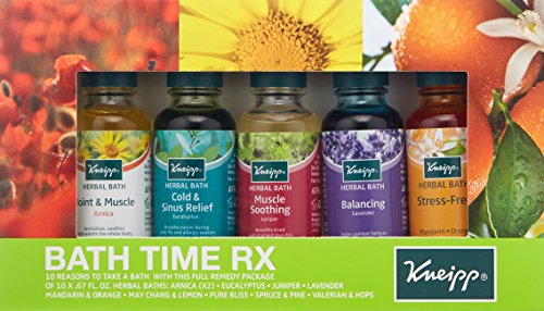 10 Reasons to take a bath! Transform your bath with the full remedy package of 10 x .67 fl.oz. Baths: Arnica Joint & Muscle Eucalyptus Cold & Sinus Lavender Balancing Melissa Relaxing Mandarin & Orange Stress Free (x2) May Chang & Lemon Enjoy Life (x2) Red Poppy & Hemp Pure Bliss Spruce and Pine Warmth & Energy Make Kneipp bath time a healthy ritual and soak in nature’s benefits. Transform your bath with the healing powers of water combined with plant and herbal essential oils blended to promote better overall health.Feature