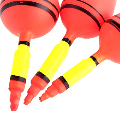 -. Feature : Usage: Get the fishing line, float, sinker and hook all in readiness. First assume a water depth, then adjust the float to the assumed position. Drop the fishing line into the water, if the float lie horizontally, the float is too high and required to go down, if the float is submerged in water, the float is too low and required to go up. Try this way until it is in the best position. / Simple and practical fishing accessories. / Color: Red. / Material: Plastic. / Diameter: 45.5/40/37.5 mm.