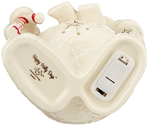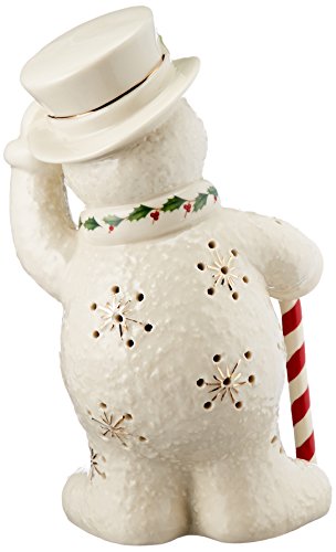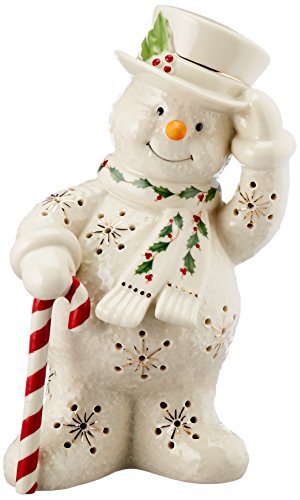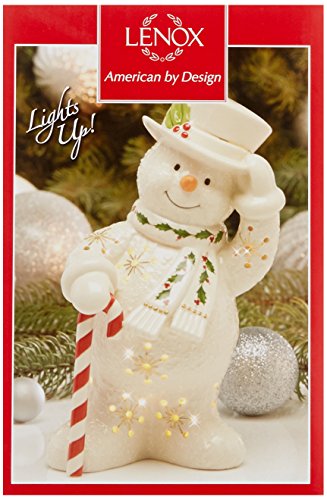 Lenox offers timeless designs that have been a treasured part of American holidays for generations. Unmatched quality and hand craftsmanship result in exquisite pieces that bring a special glow to your home. No other gift expresses the joy of the season more than specially-chosen Lenox collectibles for the people who you cherish most. Best of all, these products are created by Lenox, the name more closely associated with holiday entertaining than any other. The confidence that Lenox has in the unmatched durability of every item they offer is backed up by a lifetime breakage replacement policy to guarantee many years of enjoyment to each customer. The Happy Holly Days Snowman Lit Figurine is hand decorated with a festive holly and berries motif and trimmed in gold. He holds a candy "cane" and is about to tip his hat. The jolly fellow is also lighted, creating a special seasonal glow. Batteries are included.Feature