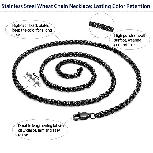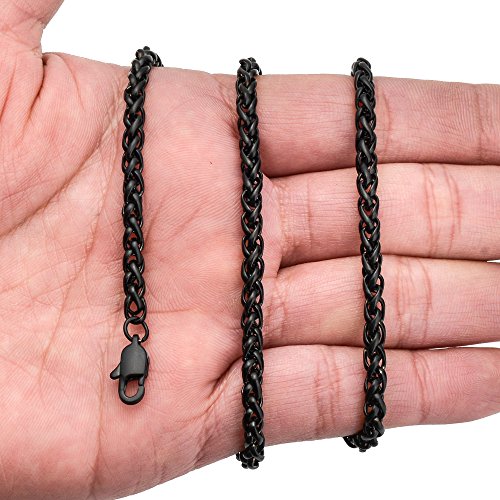 - Title : Besteel Jewelry 4MM Mens Womens Stainless Steel Wheat Chain Necklace Link Black 20 Inch