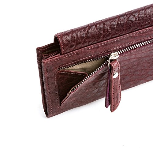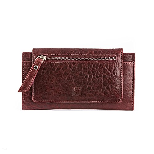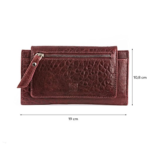 Brand:?DuDu® Material:?Genuine Italian leather vegetable tanned, hand-buffered and natural crumpled Dimension (refer when wallet is closed):?19 x 10,8 x 2,4 cm Weight:?175 g Box:?Included Type:?Ladies Composition:?2 external pockets with zip, 12 credit cards pockets, 1 inner pocket with zip and 2 extra pockets Available colors: Red, Natural, Bordeaux, Blue. All plain colour
