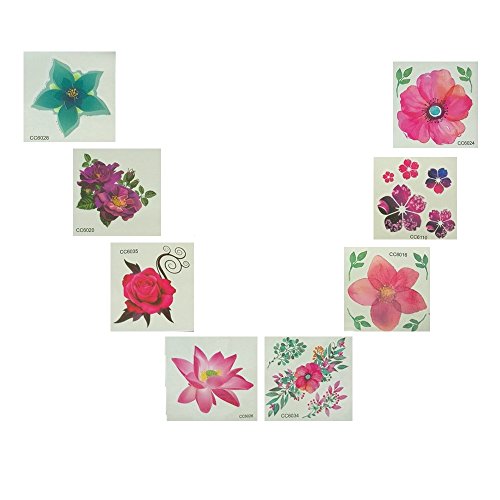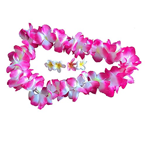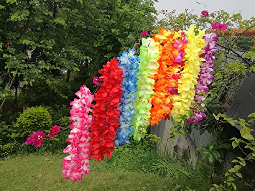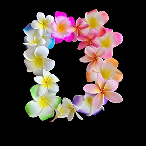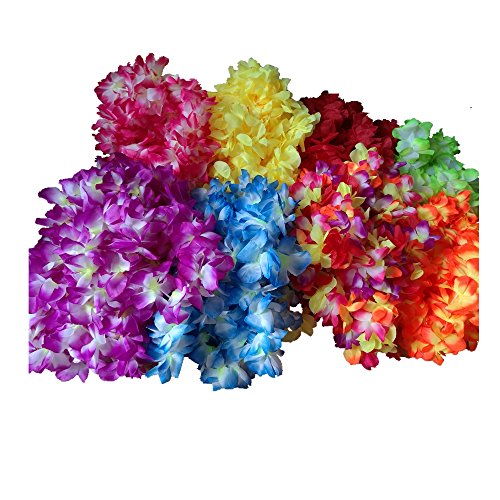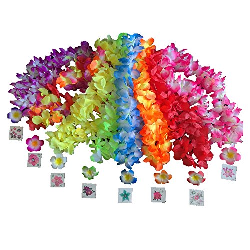 Ranavy Hawaiin Lei Pack of 8 with flower clips and flower tatoo (8 Colors)