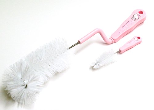 -. Feature : Large rotating bottle brush that cleans residue thoroughly without the need of harsh scrubbing / Dimension: Bottle Brush: 12"1/2; Pacifier Brush: 4"3/4 / Material: Nylon Bristles / Material: Polypropylene holders / Sanrio Licensed Products