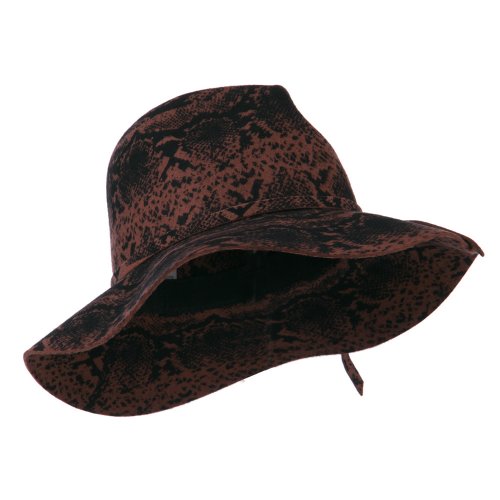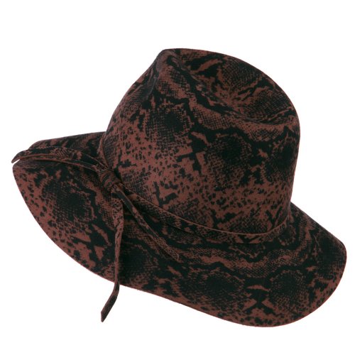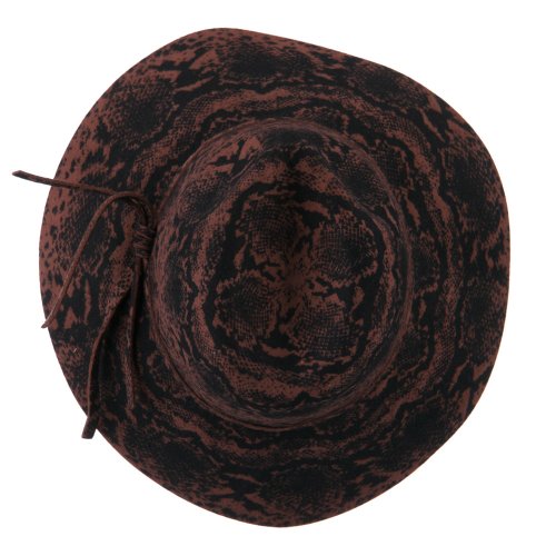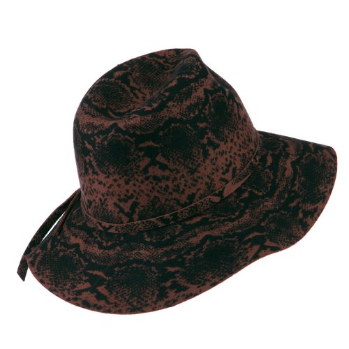 -. Title : Snake Printed Wool Wide Brim Fedora - Pecan