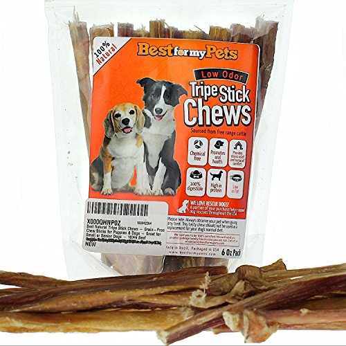 -. Binding : Misc. -. Brand : Best For My Pets -. Feature : Tasty & Healthy. Dogs Just Love These Natural Treats / Fully Digestible. All-Natural, One Single Ingredient. No Additives, Chemical or Preservatives Added / Hand-inspected To Offer Your Dog The Highest Quality Natural Dog Treats Approved by USDA/FDA. / No Hassle Guarantee. Happy Dog or Your Money Back. Refund + Replacement Bag at Any Time. / We Love Rescue Dogs! Buy 1 or More Bags and Help Us Donate To Dog Shelters Throughout the U.S. -. Label : Best For My Pets -. Manufacturer : Best For My Pets -. PackageQuantity : 1 -. ProductGroup : Pet Products -. ProductTypeName : PET_SUPPLIES -. Publisher : Best For My Pets -. Size : 5 inches - 6 Oz Bag -. Studio : Best For My Pets -. Title : Best Natural Tripe Sticks Chews, USDA/FDA-Approved (6 Oz Bag) by Best For My Pets