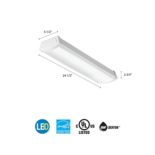 Technical Specifications: Power: 19.6W Input Voltage: 120V (Connects directly to power supply via provided UL recognized driver) Luminous Flux: 1380 LM Emitting Color: 4000K (Bright White) Dimmable: NO Light Source: LED CRI: 85 Dimension: 24.4 x 5.5 x 2.6in Light direction: General Average life: 50,000 hours Warranty: 5 years – Limited/ Electrical: Long-life LEDs, coupled with a high-efficiency driver, provide extended service life. Standard input = 20/40 watts (2’/4’), 60 lumens per watt. Fixture operates at 120 volts, 60Hz. Meets Highest Industry Standards: UL certified in the USA and Canada, Energy Star Rated, and Damp Listed More electrical information and complete list of compatible dimmers are located on spec sheet How many LED lights do I need for the room? FMLWL 24 840 (2 foot)