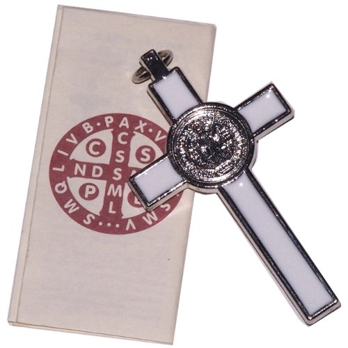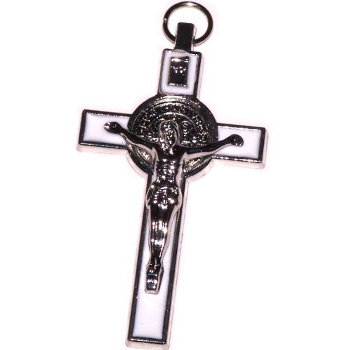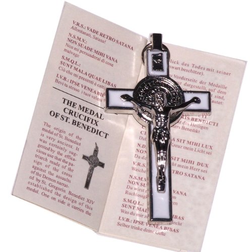 ST. BENEDICT CRUCIFIX PENDANT - LARGE - WITH WHITE ENAMEL (7 CM - 3 INCHES)