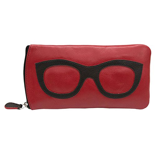 (ILI)/Accessories/Eyewear/DIRECT FROM USA/Women's Leather Eyeglasses Case - Zipper Close - 7" x 4" - Red with Black