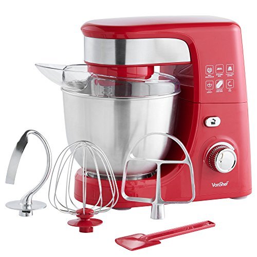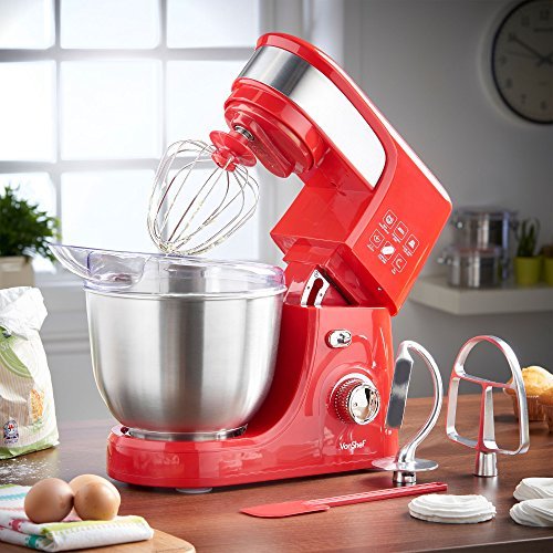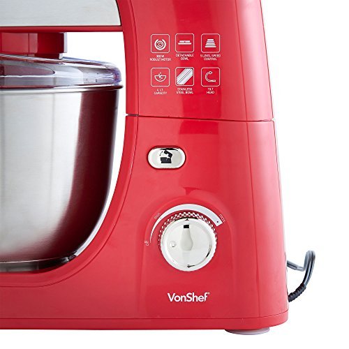 Make light work of preparing mixes, doughs and batters with theVonShef Red Stand Mixer. The densest of pizza doughs, light cake batters, airy egg whites; not a problem for this nifty stand mixer, which has earned its stripes as the ultimate kitchen countertop companion.