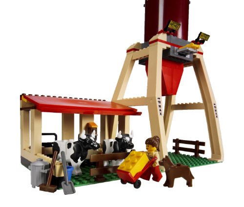 -. Feature : Includes cat, mouse, 2 cows, dog, farmer minifigure, girl minifigure, farmhand minifigure and accessories! / Raise the roof panels on the barn, empty the grain silo, use the winch and hook to move the hay bales or tilt the wagon! / Barn measures 6 inches (15cm) tall by 5 inches (12cm) wide; silo is more than 11 inches (27cm) tall! / Includes 609 Pieces / Divided into sub-models for easy building and easy play.