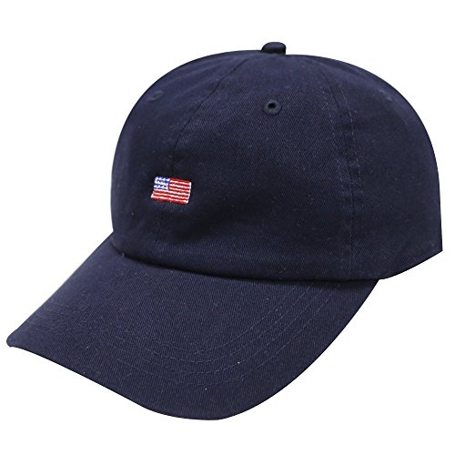 Title : City Hunter C104 Small American Flag Cotton Baseball Cap 10 Colors (Navy)