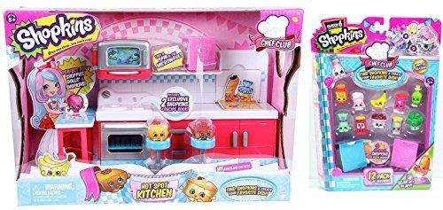 -. Feature : Shopkins Chef Club Season 6 Hot Spot Kitchen PLUS Season 6 12 Pack / Get cooking in the Chef Club Kitchen! The ShopkinsTM are ready to make and bake. Take the Shopkins for a spin in the microwave. / The kitchen play set comes with 2 Exclusive Shopkins and 2 recipe books! / Cook up a treat in the oven. Pop down the surP.R.Ise breadboard for a slice of the good life! Store your recipe books on the shelf and ShopkinsTM in the cupboards and drawers. Display your Shopkins on the two stools and the cake stand! / This Chef Club playset connects with other Chef Club Playsets