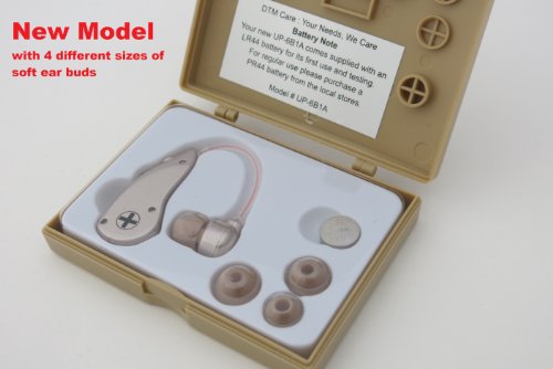 -. Title : Best Digital Ear Hearing Amplifier, Personal Sound Enhancer amplifier, one PR44 button cell hearing aid battery can use up to 100 hours. 4 sizes of ear buds fit for most customers. New flexible tube best fit over ear. FDA Approved.
