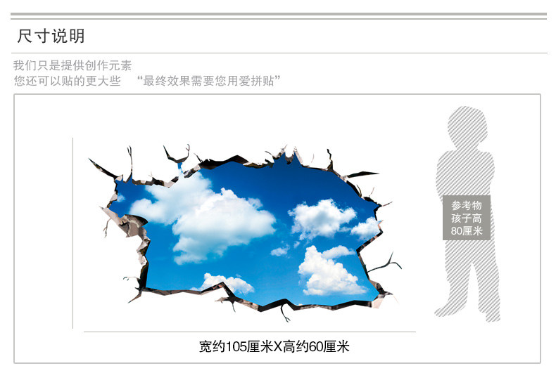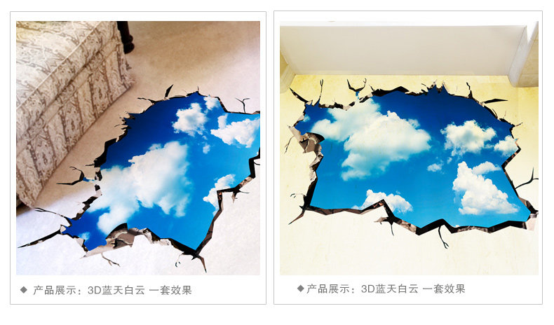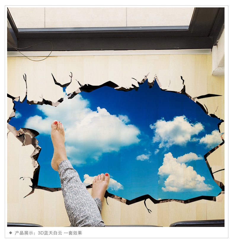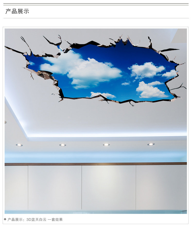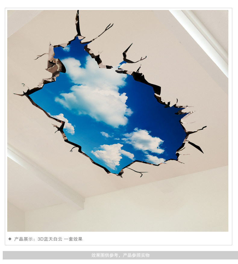 3D立体墙贴纸贴画房顶屋顶天花板客厅墙壁纸装饰自粘创意蓝天白云