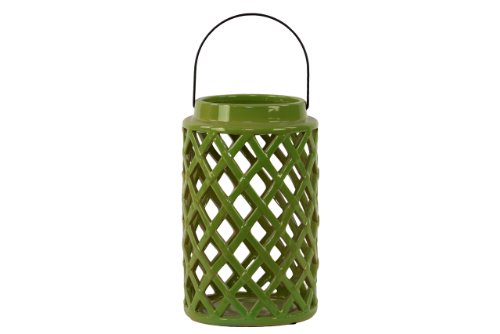 -. Title : Urban Trends 40407 Decorative Ceramic Lantern, Green