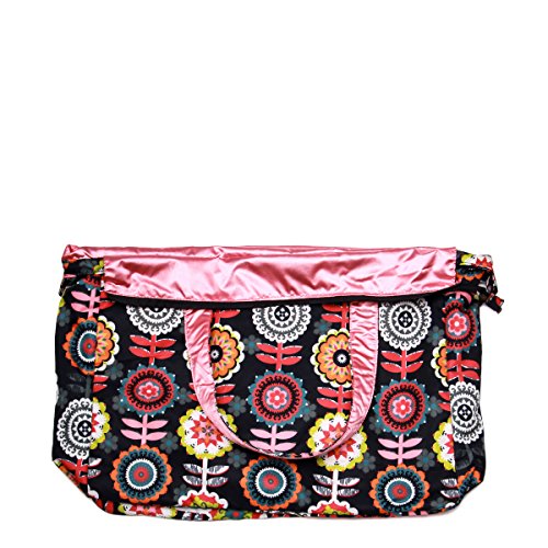 The Ju-Ju-Be Super Be Zippered Tote Diaper Bag is chic, smart, ultra-light and functional with extra pockets for added versatility. This tote has SUPER powers! It’s SUPER cute! It’s SUPER light! It’s SUPER stuffable! It’s SUPER versatile! Does it have X-Ray vision? No, but its zippered top will help you get through the X-ray machine at the airport faster than a speeding bullet. The Super Be’s inner lining is protected with an Agion natural antimicrobial treatment that inhibits and reduces the growth of odor-causing bacteria, mold and mildew. The outer fabric is treated with Teflon fabric protector, making it easy to repel stains and keep the Super Be clean. In addition to the spacious interior, the Super Be has (7) additional pockets for keeping you ultra-organized and a 12-inch drop strap. The front of the Super Be has (3) extra pockets, (2) of which are tall enough to hide your water bottles, and a center zipper pocket for your smartphone or car keys. The main zippered section is large enough for diapers, wipes, extra clothes, soft toys and other items needed. Inside the bag there are (2) interior mesh pockets and an extra-long attached key clip. The large back pocket is perfect for magazines or your children's books and is designed with a snap closure. The Dancing Dahlias print is a vibrant multicolored floral pattern on a black fabric, with a bright pink lining and silver colored metal hardware. This bag is machine washable and measures 18-inches by 15-inches by 5.5-inches in size. The Ju-Ju-Be Super Be Zippered Tote Diaper Bag comes with a 90-day limited warranty that protects against manufacturing defects. Founded in 2005, Ju-Ju-Be is a Southern California company that fuses science, style, and attitude to create diaper bags, purses and other accessories that are both fashionable and fun.Feature