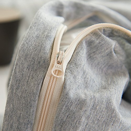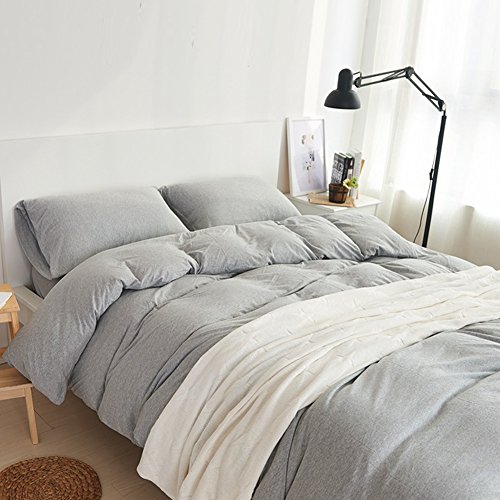 PURE ERA Solid Ultra Soft Cotton Jersey Knit Home Bedding 3 Pieces Duvet Cover Set,1 Duvet Cover 1 Pillow Sham and 1 Fitted Sheet Grey Twin Size