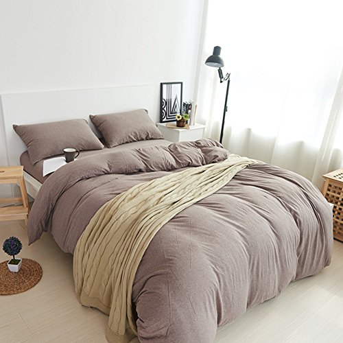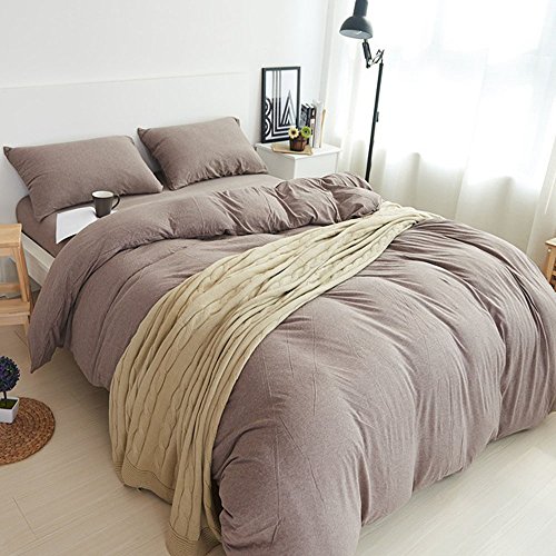 PURE ERA Solid Cotton Ultra Soft Jersey Knit Home Bedding 3 Pieces Duvet Cover Set,1 Comforter Cover and 2 Pillow Shams Coffe Rosybrown