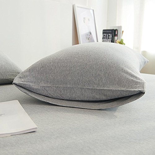 PURE ERA Solid Cotton Ultra Soft Jersey Knit Home Bedding 3 Pieces Duvet Cover Set,1 Comforter Cover and 2 Pillow Shams Grey Queen Size