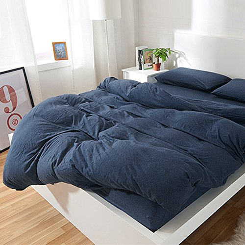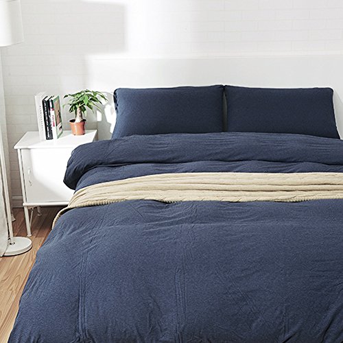PURE ERA Solid Cotton Ultra Soft Jersey Knit Home Bedding 3 Pieces Duvet Cover Set,1 Comforter Cover and 2 Pillow Shams Midnightblue