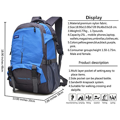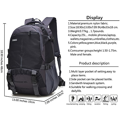 -. Title : Maker 25L Hiking Backpack Sports Outdoor Cycling Backpack Bag Camping Backpack Water Resistant Lightweight Big Daypack