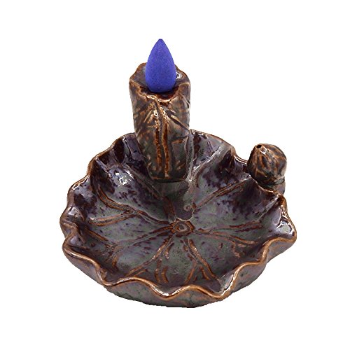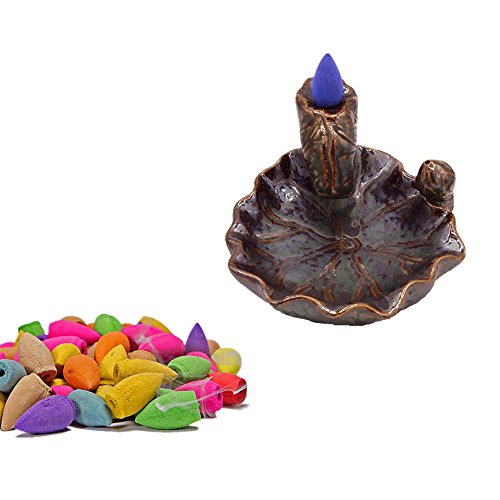 MIUSIE Ceramic Smoke Backflow Incense Burner Pocerlain Decorated Charcoal Censer Holder Home Decor Gift with 40 Cones,S10